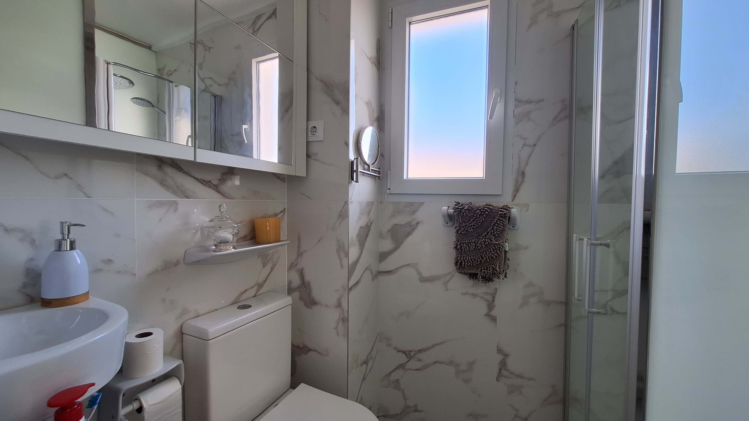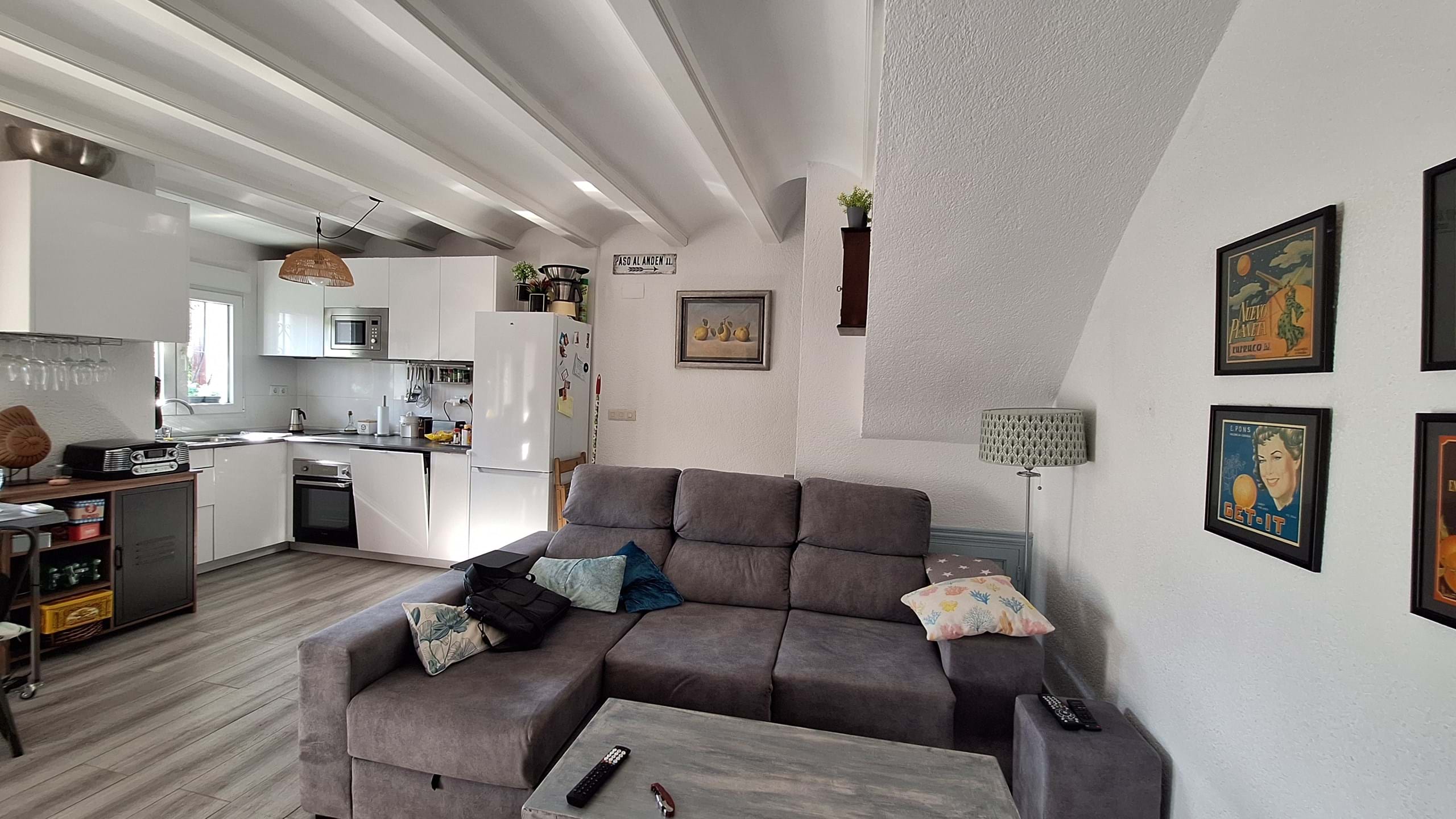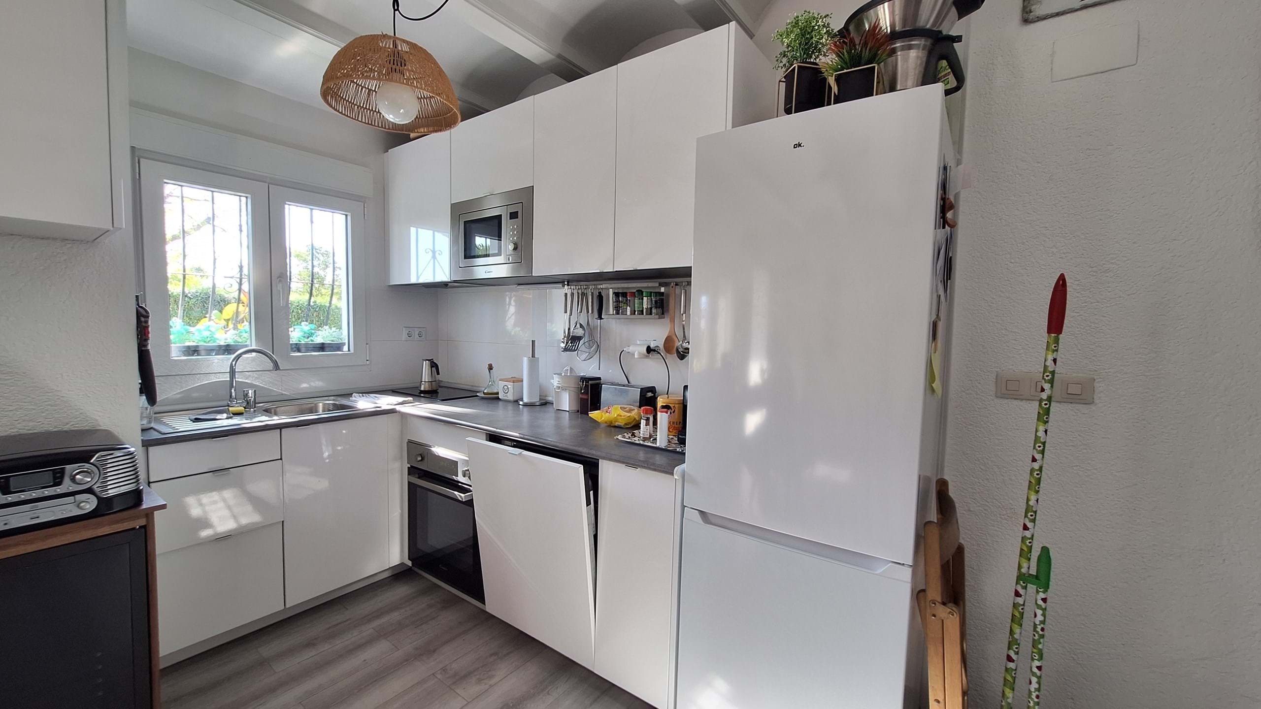 This bright duplex apartment in Els Poblets, located on the Costa Blanca, is just a 2-minute walk from the beach. The property is divided over two levels. On the main floor, you’ll find a spacious living room equipped with air conditioning and a fireplace, as well as an open, fully fitted kitchen.