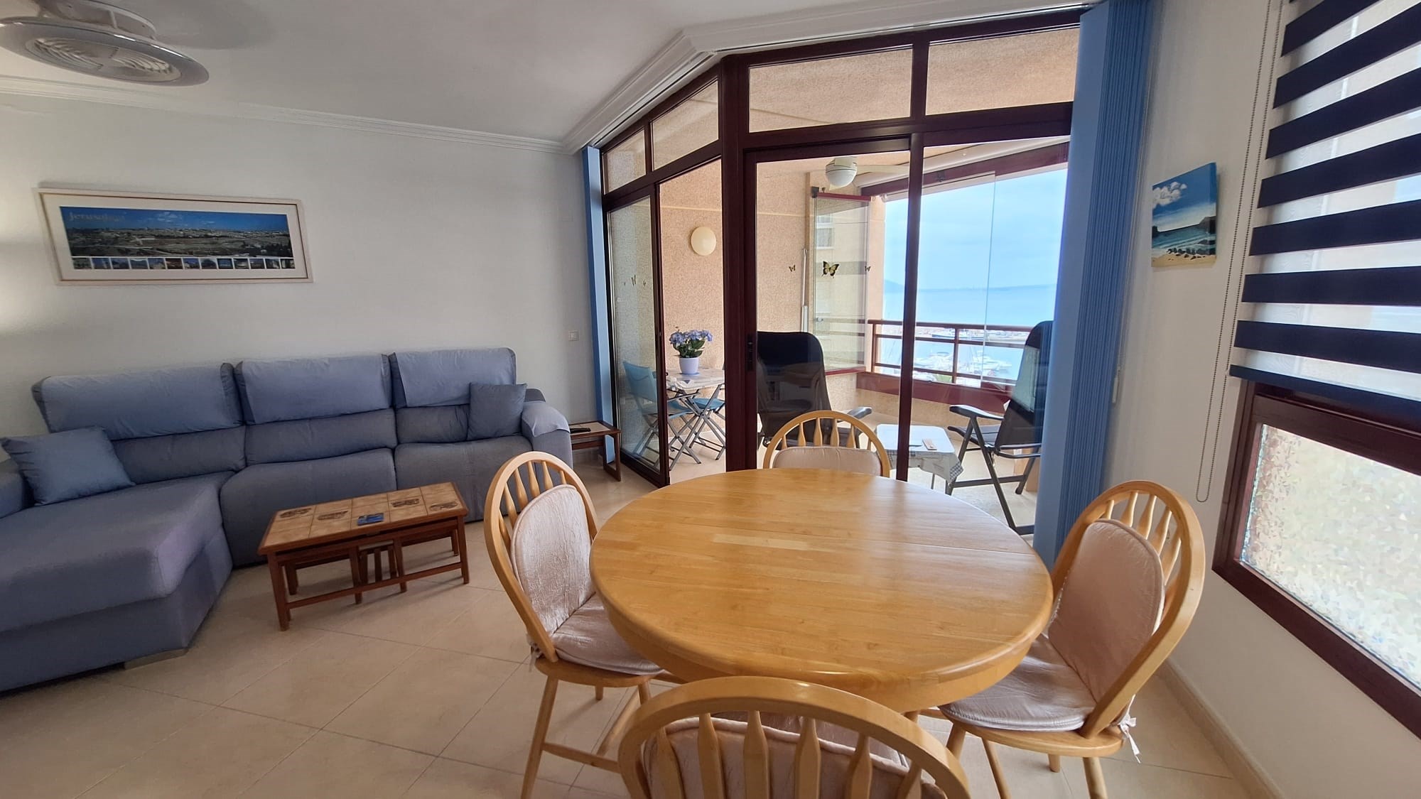 The spacious living and dining area is filled with natural light and enjoys spectacular sea views. From here, sliding doors open onto a generous balcony overlooking the marina complete with elegant glass curtains, allowing for year-round enjoyment of this incredible setting.