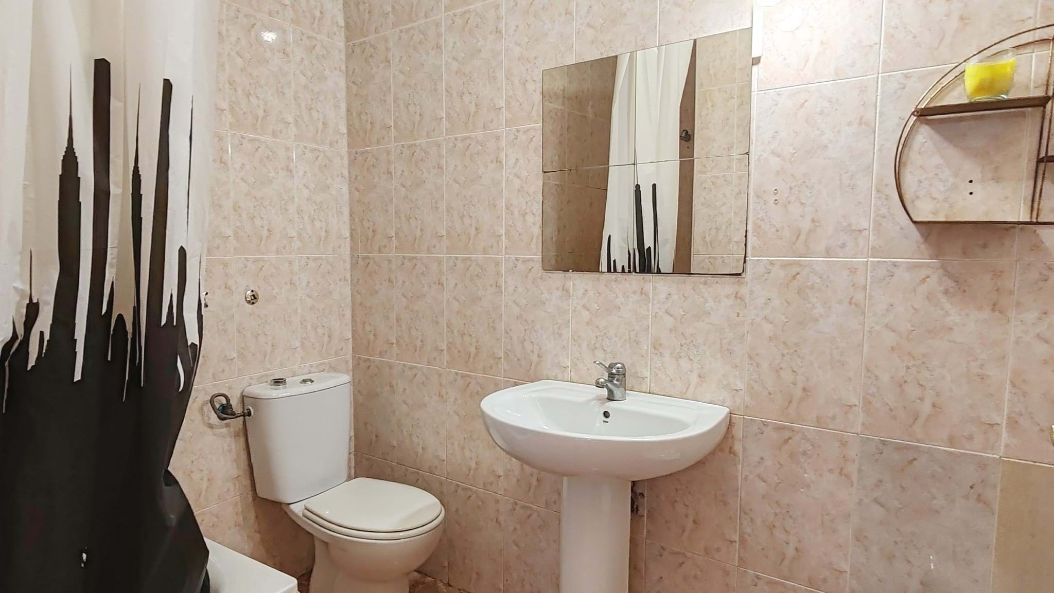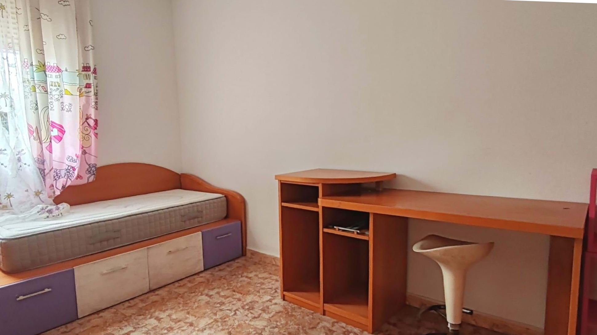 The property offers 112 m² of built area and features a very functional layout. It includes three generously sized bedrooms, a welcoming living room, and a full bathroom located next to the living area, currently fitted with a bathtub and in the process of being updated to a modern walk-in shower. The large independent kitchen provides ample space for daily use and includes a very generous pantry, as well as a second full bathroom with a shower.