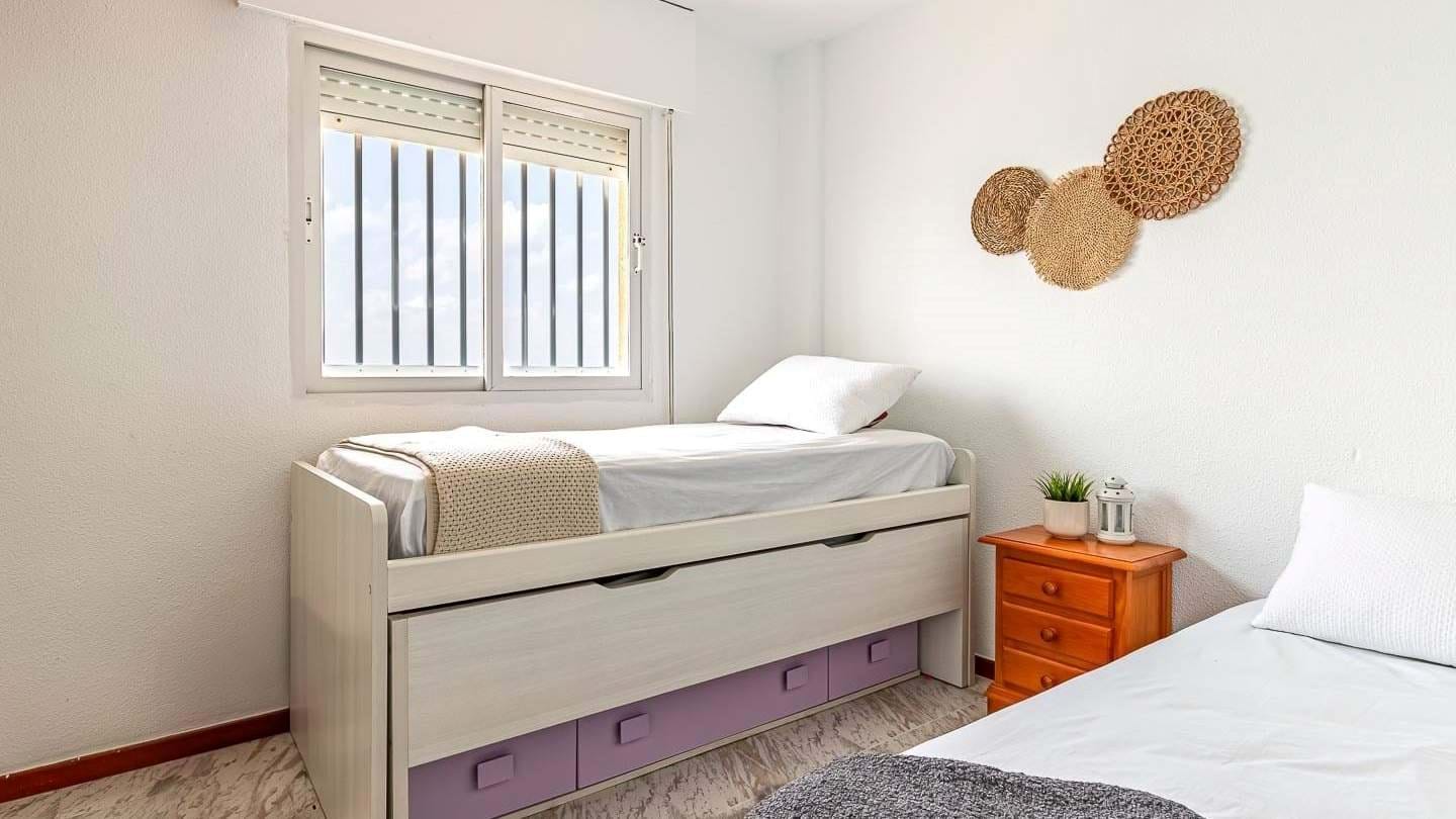 Living in Residencial Playa Blanca means enjoying a high quality of life. The complex offers direct access to the Mar Mayor from its communal areas, a community swimming pool perfect for cooling off after a day at the beach, and a garage space included in the price, adding extra convenience by eliminating the hassle of parking.